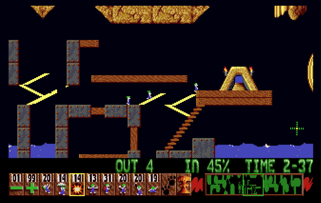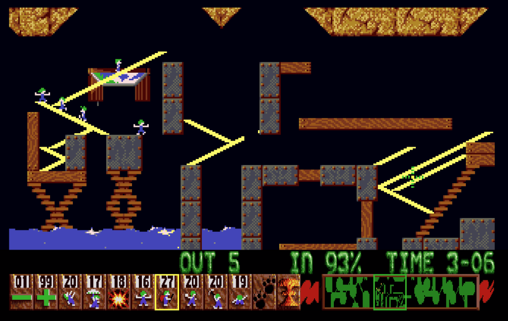 Okay, I have been playing Lemmings recently – the original version on the Amiga. I uncovered a few shitty levels that I couldn’t quite figure out right-away, but found they’re very well designed.